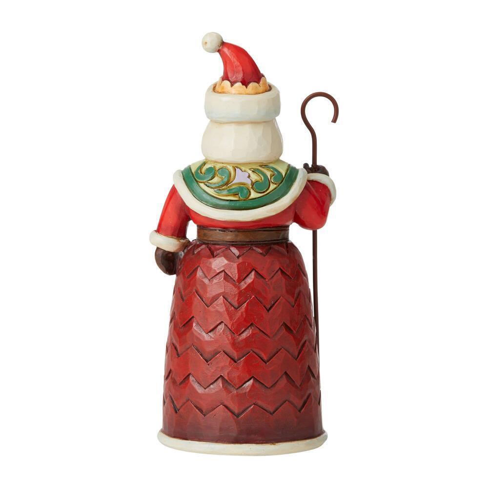 This pint sized Jim Shore Santa holds a shepherd's hook in hand as he stoically watches another season unfold. Herding Christmas spirits home for the holidays, Santa celebrates with ivy, holly, and days filled with jolly.
