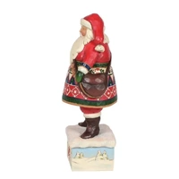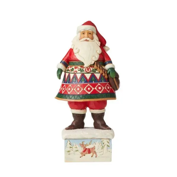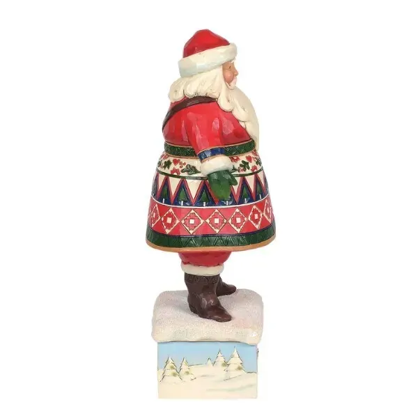 Wearing a splendidly patterned cloak, Santa grabs his satchel for a journey through the forest. Feeling festive, he goes for a walk in the frost to recruit reindeer for Christmas. This 13th annual Jim Shore Lapland Santa is a marvel all its own.