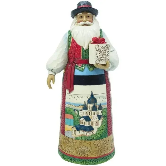Jim Shore's Christmas Around the World collection celebrates the many beautiful winter traditions and customs from countries near and far. This colorful Baltic Santa celebrates Lithuanian, Latvian, and Estonian cultures with grace and curiosity.