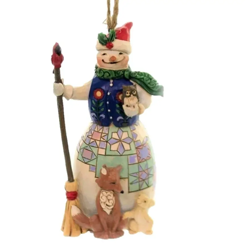 JIM SHORE HEARTWOOD CREEK - SNOWMAN WITH ANIMALS HANGING ORNAMENT
