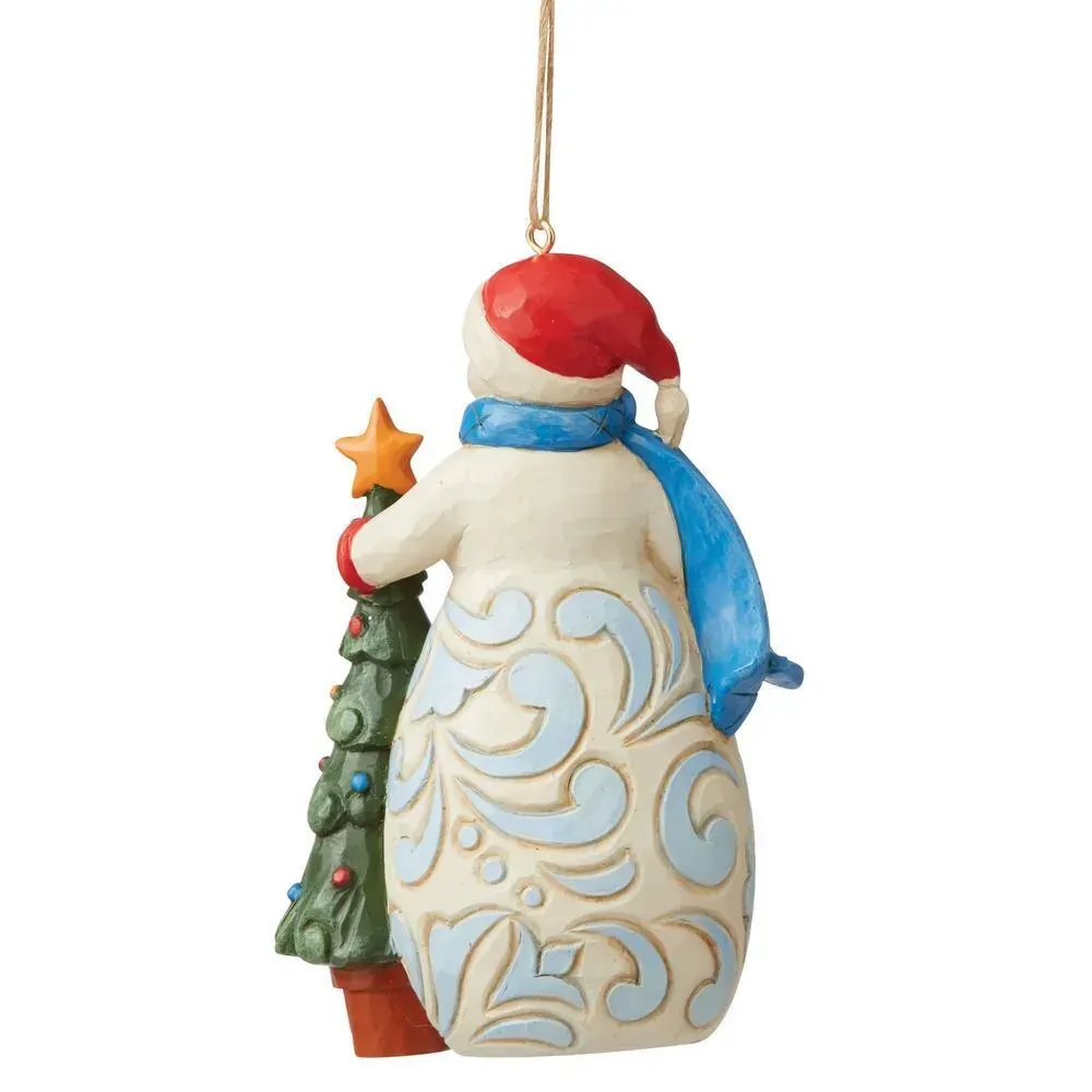 JIM SHORE HEARTWOOD CREEK - SNOWMAN WITH TREE HANGING ORNAMENT