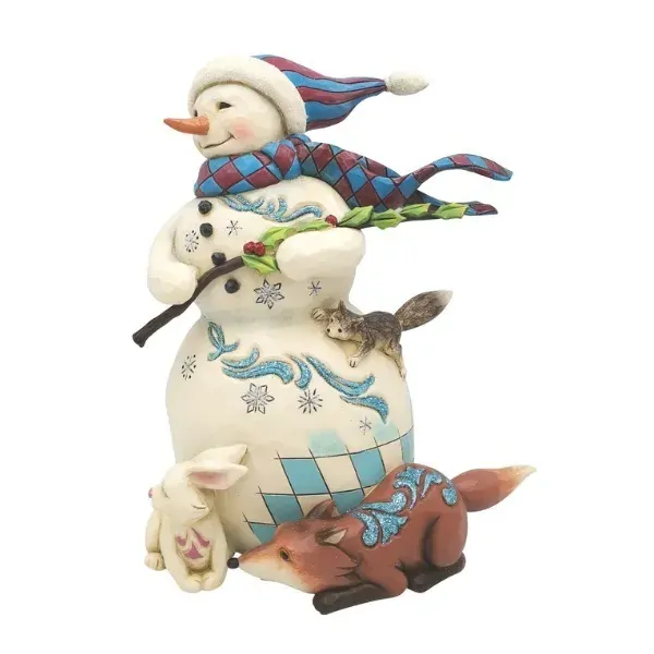 Using each other for support, this Jim Shore snowman and his friends fight the winter winds with friendship as an anchor. Wind whistling and snow glistening, together they'll winter any storm.