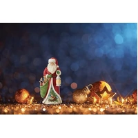 Wading through a winter night, lantern in hand, Santa makes delivers on foot with a large bag of enticing toys. With an image of Santa's sleigh flying over a town, a large Christmas tree is framed on Santa's cloak with a emerald Swarovski crystal.