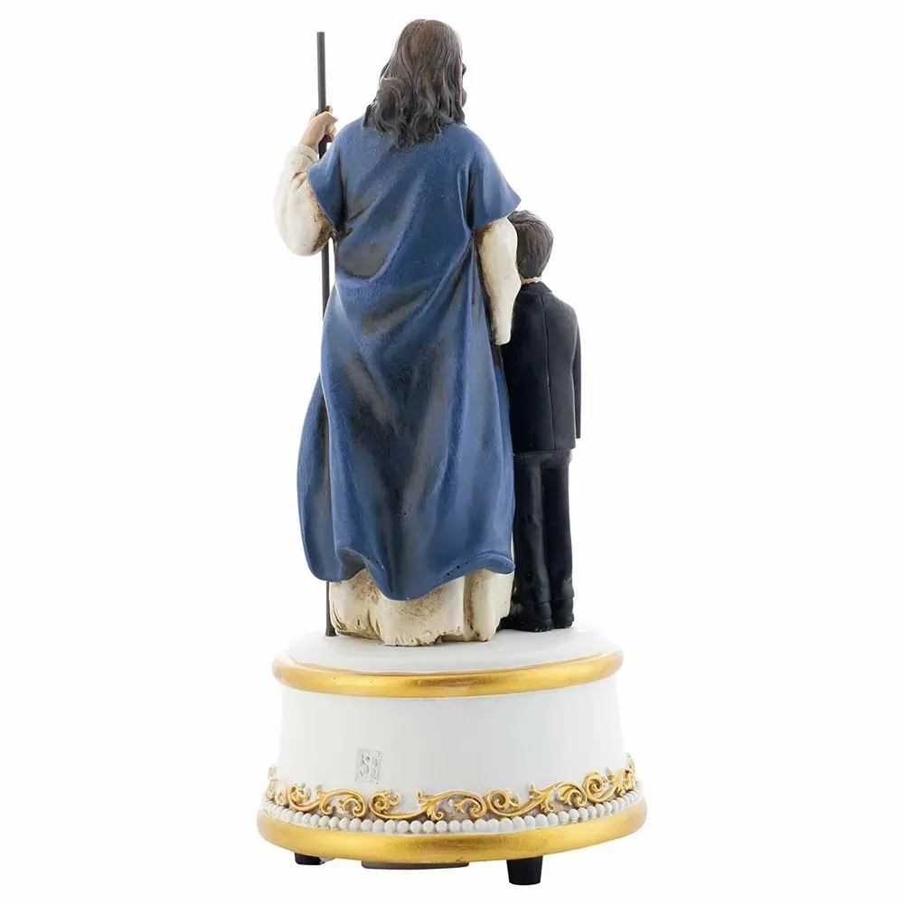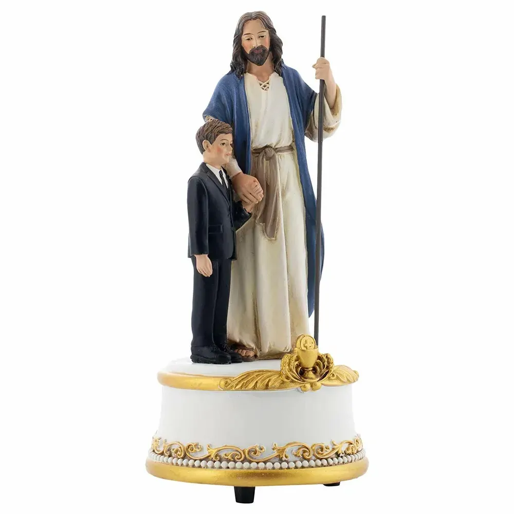 This Musical Figurine will make the perfect First Holy Communion Gift. The musical figurine shows the young boy in his Communion suit and his hands folded with Jesus crouching beside him with his arms outstretched around him.