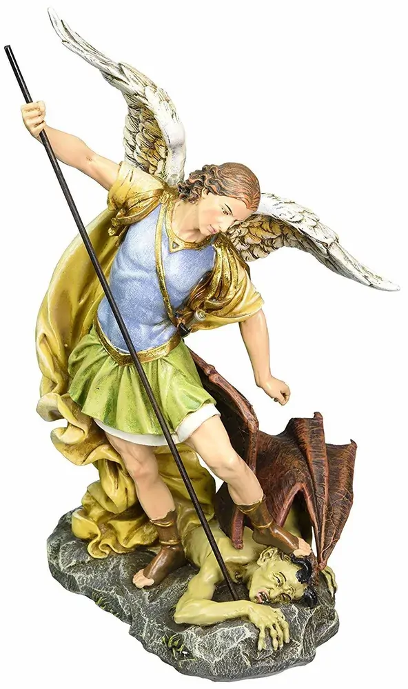 Joseph's Studio exclusive figure depicting St Michael the Archangel defeating Satan. St Michael is leader of the heavenly forces and triumphs over the powers of hell.