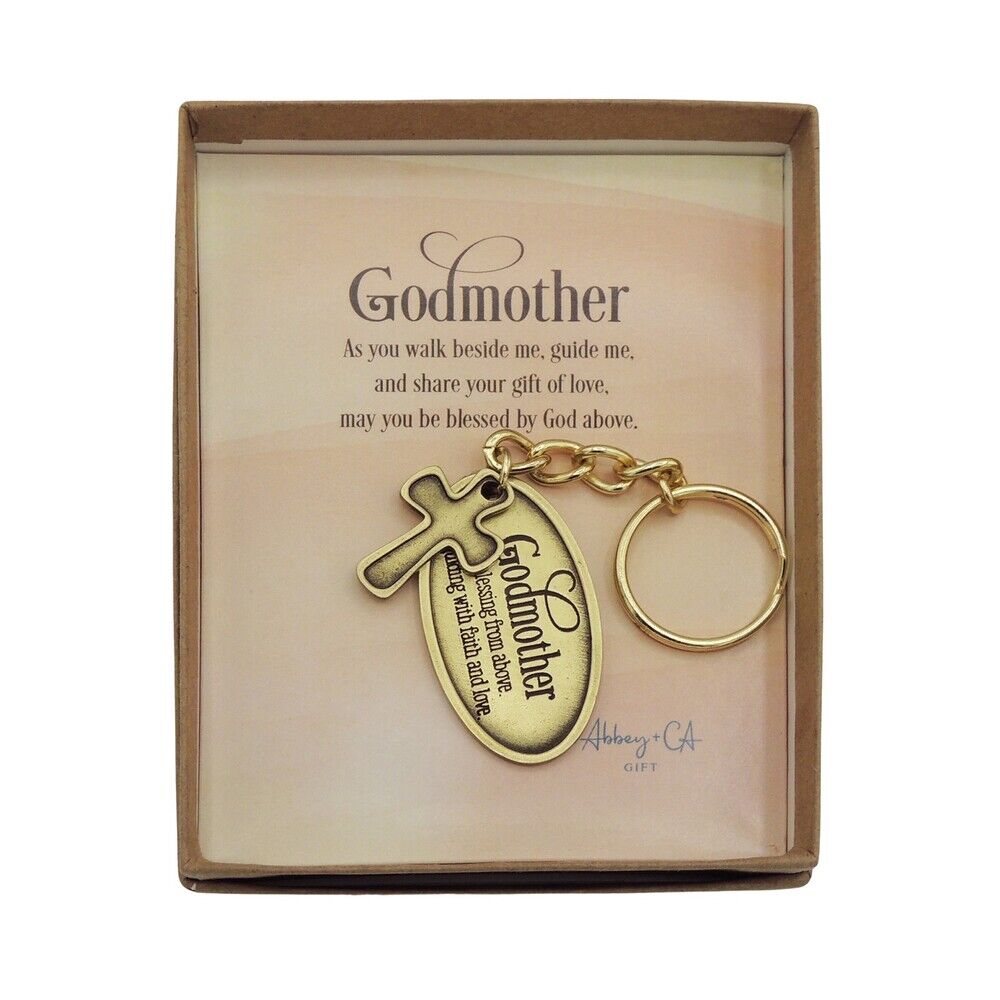 This keyring is a thoughtful and meaningful way to show your appreciation and love for your godmother. It features a silver metal cross and oval emblem with the words “Godmother, blessing from above” engraved on it. This keyring is a wonderful gift for your godmother on any occasion, such as her birthday, Mother’s Day, or Christmas. A great way to thank her for being your spiritual guide and mentor.