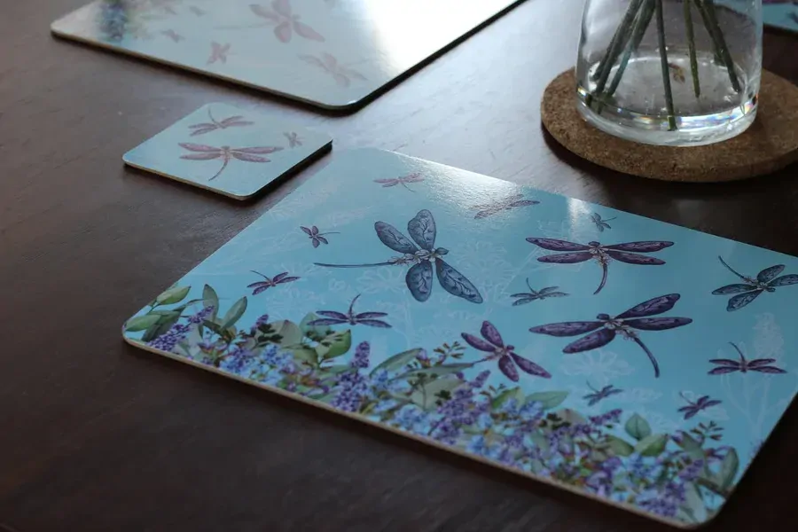 Magical & cozy! These placemats are ready to set your table with the rest of your Lisa Pollock tableware. Sold in sets of six and packaged in a beautiful matching box, and made of MDF & Cork, these adorable Lavender Dragonflies are excited to join your table!