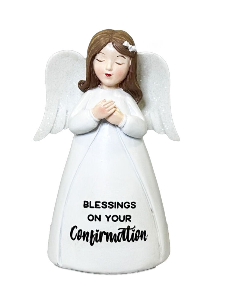 Part of the 'Little Blessings Angel' Series - a beautiful angel figurine with clasped hands and the words 'Blessings on your Confirmation' inscribed. Perfect gift for a Confirmation.