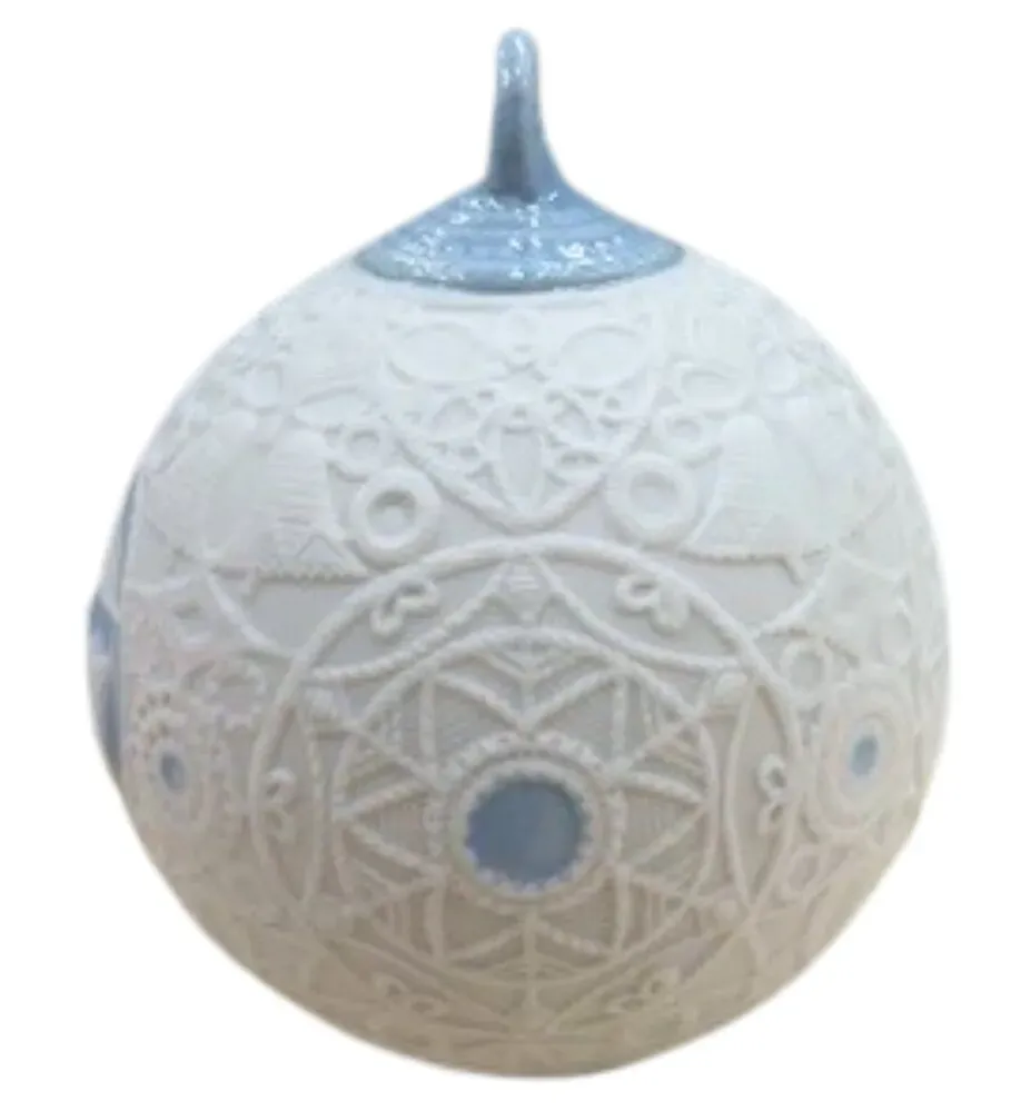 It's delicate design makes an ideal addition to your Christmas tree or a thoughtful gift for loved ones who were born in 2009. Made from high-quality porcelain, this Lladro ball ornament is a testament to the brand's commitment to excellence. The skilled artisans at Lladro have meticulously crafted every detail, from the pastel blue accents to the intricate white carvings. The result is a stunning piece of art that will be treasured for years to come. Whether you are a seasoned Lladro collector or a newcomer to the world of Lladro, this Christmas votive is a must-have addition to your collection.