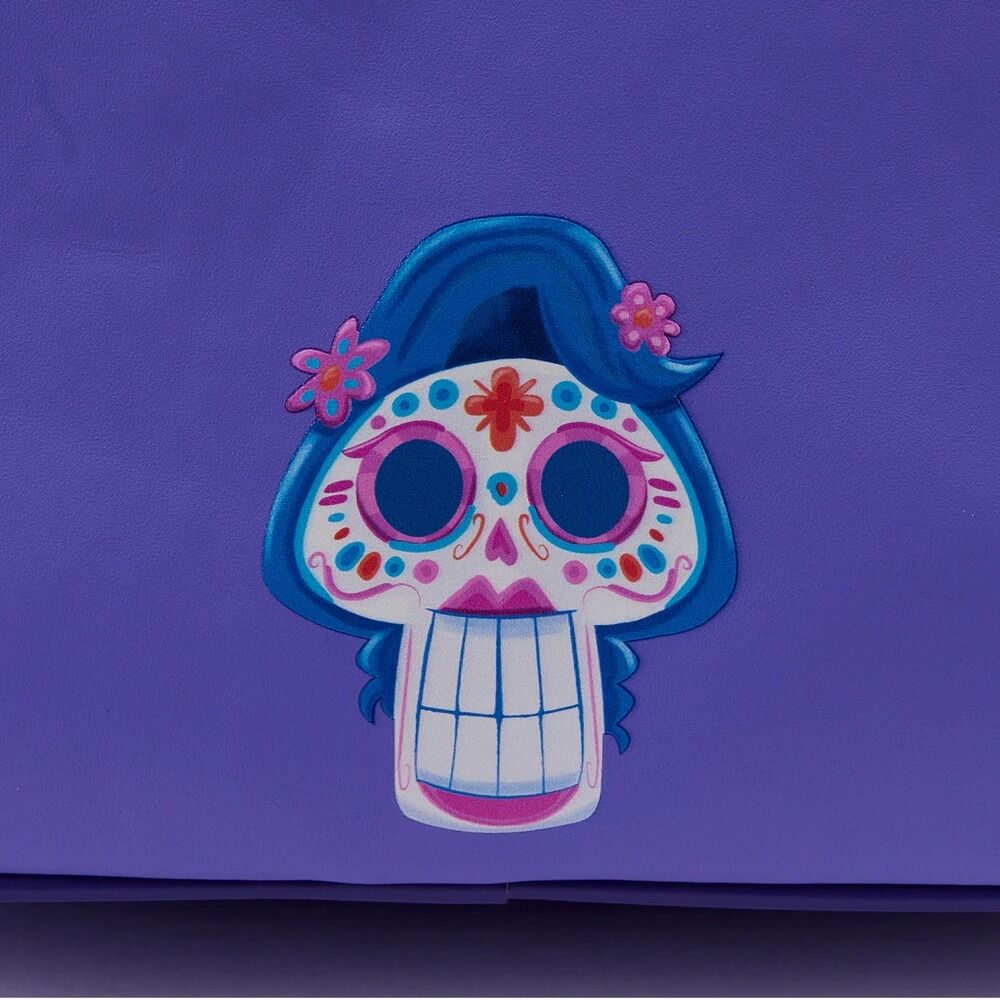 In a concert of a lifetime, Miguel and Héctor from Coco knock ‘em dead. Capture the moment when Miguel and Héctor bring down the house in the Land of the Dead with this Loungefly Pixar Moments Miguel and Héctor Performance Mini Backpack. In the dark, this backpack takes on a life of its own, as the white background of the colorful Day of the Dead skull glows. Embroidered stars accompany Miguel and Héctor on stage, and applique details bring them to life. An enamel zipper charm of a guitar tops off the look on the front pocket “stage” where the performance takes place. Printed stars and curtains wrap around on the side pockets, and on the back, the colorful Day of the Dead skull makes an encore appearance. It’s the perfect accessory for stealing the spotlight wherever you go, and keeping favorite animated moments close.