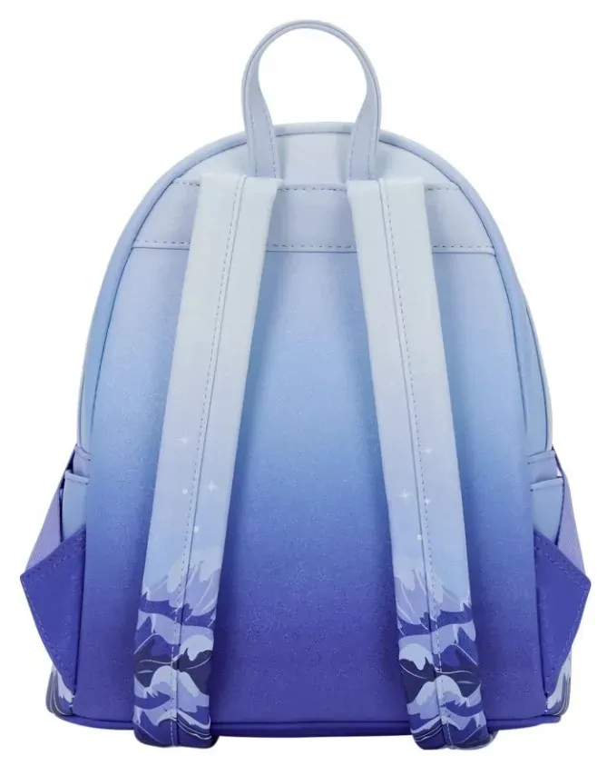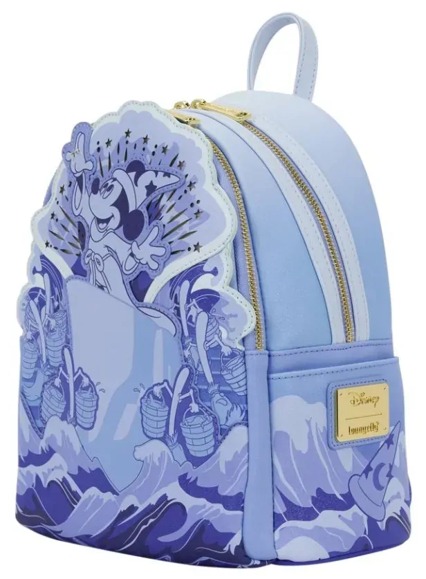 Celebrate a Disney classic in style! This mini backpack is inspired by Disney's Fantasia. You'll find Sorcerer Mickey front and center casting magic (the stars around him light up!). Around him are crashing waves and the Magic Brooms! Gold foil and shimmer faux leather make this an extra special piece! Show off one of your favourite Disney classics with this bag!