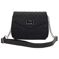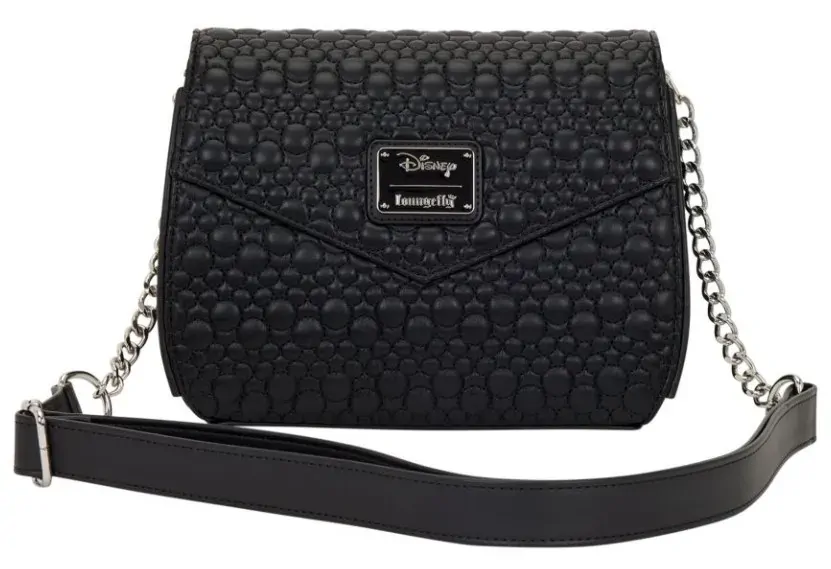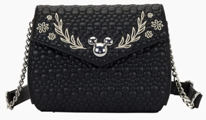 A super cute, timeless Disney crossbody for any occasion! This crossbody features a quilted pattern all over of Mickey Mouse silhouettes. Over the front flap, you'll find a metal charm of Mickey's silhouette, flanked by embroidered flowers and leaves. It's a fun way to add a flourish of Disney magic to your outfit!