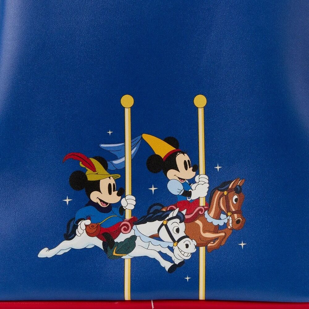 Royal adventures are tailor-made with our Loungefly Disney Brave Little Tailor Minnie Mouse Cosplay Mini Backpack. Princess Minnie Mouse eagerly awaits news about the Brave Little Tailor defeating the giant. Her adorable face, brought to life in applique detail, peeks up over the front zipped pocket, and a zipper charm of the king adds to the story. Minnies princess hat and applique tulle veil rise up over the top of the backpack. Her princess outfit weaves itself over onto the side pockets as well. Picking up the thread of the story on the back, youll find Mickey Mouse and Minnie Mouse celebrating at the town carnival, riding horses on the carousel. Enjoy sew many fun-filled adventuresor simply turn everyday outings into character-filled memories.