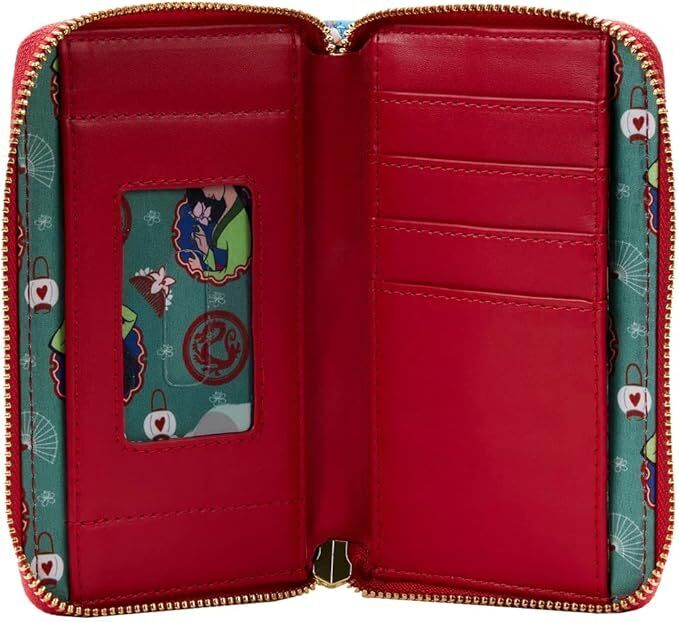 Let journeys blossom with this Loungefly Disney Mulan Princess Scene Zip Around Wallet. Each side of this wallet is covered in original art depicting key moments from Disney’s Mulan. On the front, you’ll find Mulan and Mushu enjoying a playful moment. On the back, Mulan is in disguise, riding Khan, her horse. Inside, there are 4 slots for holding cards, and 1 clear slot for holding your ID. It’s the perfect accessory for a Disney outing or for turning everyday moments into scene-worthy adventures.