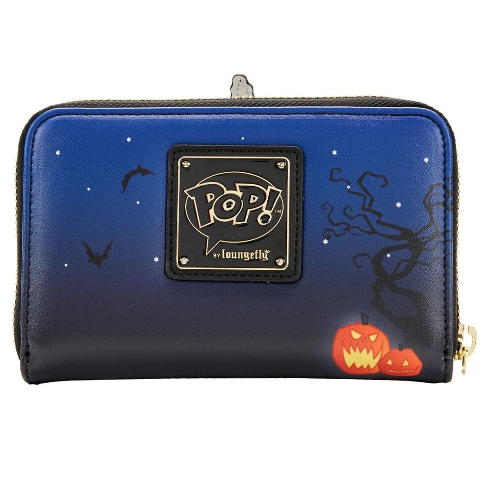 Prepare for a scare! The Funko Pop! by Loungefly Jack Skellington Zip Around Wallet brings some frightful fun to every day. On the front, Jack Skellington and Zero the ghost dog from The Nightmare Before Christmas appear in Funko Pop! form outside the gates of Jack’s house. Turn the wallet around and you will find bats flying in the night sky while some eerie jack-o-lanterns sit next to a tree. With 5 slots for holding cards and a clear slot for holding ID, this spooky accessory has room to carry all your tricks and treats.