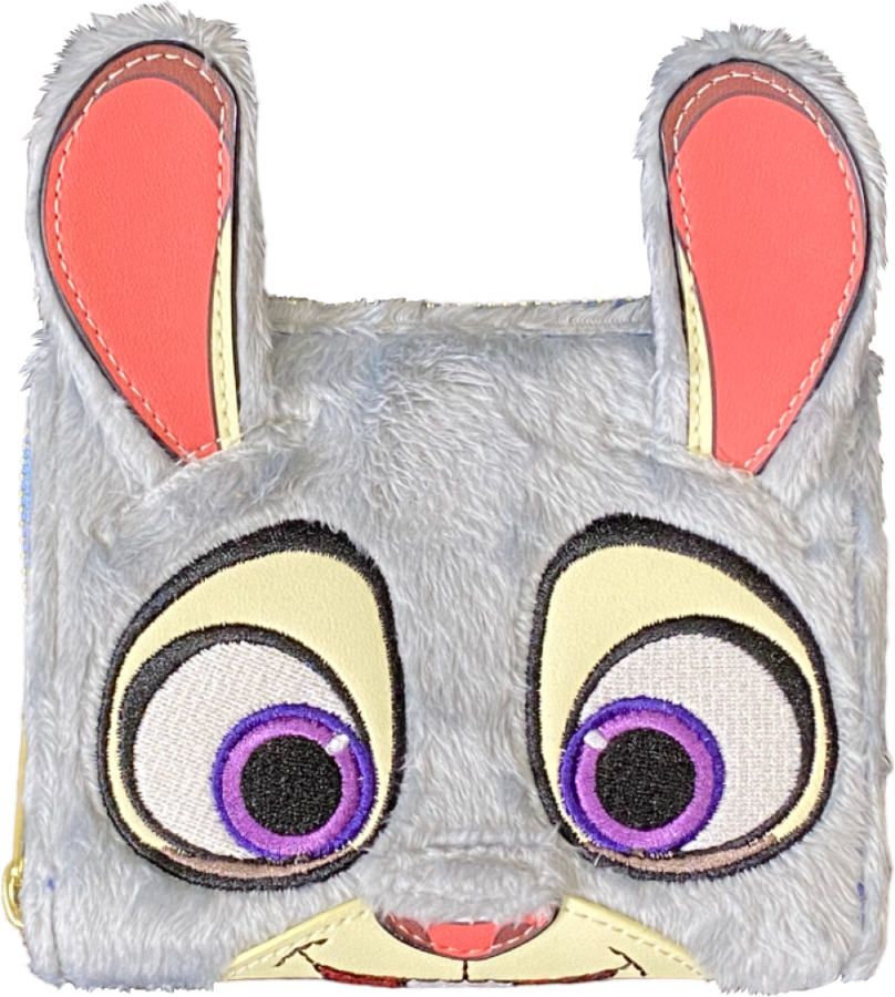 Taking the shape of a wallet, Judy looks as if she’ll hop into action at any moment! The beloved bunny to life with plush fur, including ears which rise above the wallet. Peering out on the front is her cheery embroidered face, and on the back her fluffy tail pokes out!