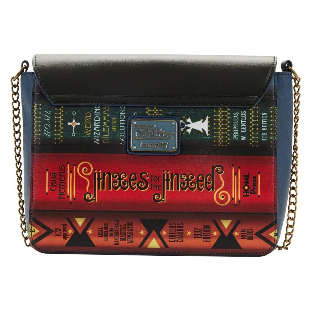 Class is in session! Brush up on your studies of wizardry with the Loungefly Fantastic Beasts Magical Books Chain Strap Crossbody Bag. This spellbound accessory displays the decorative spines of books containing magical topics of study required for students at Hogwarts. Among the texts youll find Achievements in Charming, Extreme Incantations, Weird Wizarding Dilemmas and Their Solutions, Sonnets of a Sorcerer, and more. With plenty of room to hold your classroom essentials, this enchanting crossbody bag will keep your belongings safe on any adventure.
