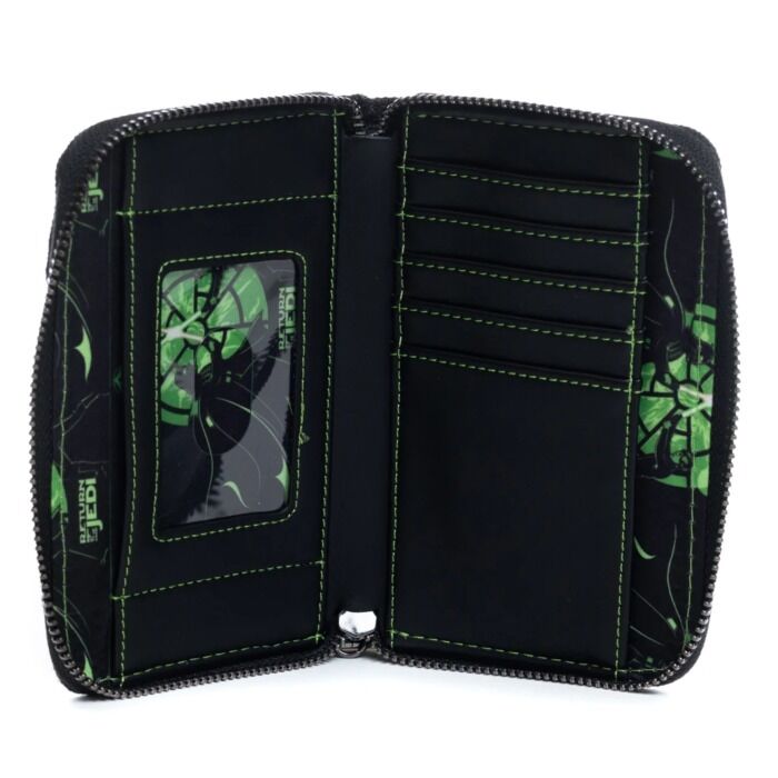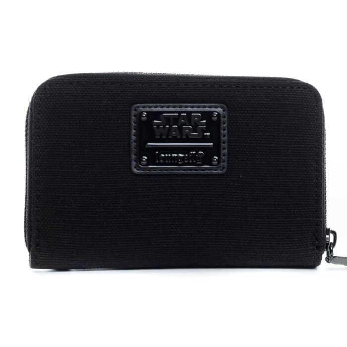This simple and stylish design depicts Luke’s costume from the film, complete with a burlap-like texture! Custom-shaped applique creates the collar and folded lapel as well as the details of his belt. The wallet is accessible with a lightsaber zipper charm that actually glows in the dark!