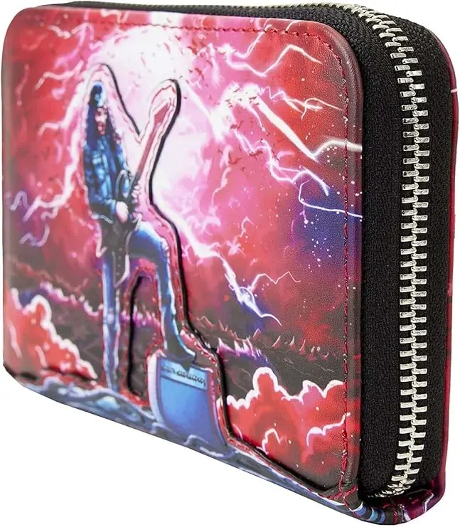 Strike up a storm in the Upside Down with this tribute to Eddie Munson! When a little boy vanishes, a small town uncovers a mystery involving secret experiments, terrifying supernatural forces and one strange little girl. Now in its fourth season set in 1986, Stranger Things sees a new threat emerge. Eddie Munson rocks out on the front of this accessory as lightning strikes. Lightning storm art covers both sides of this wallet, and the back features Demobats in flight. The lightning strikes on the front and the back even glow in the dark! Inside, you’ll find 4 slots for holding cards and 1 clear slot for displaying your ID. Take on Vecna—or your day—in style and rock your look.
