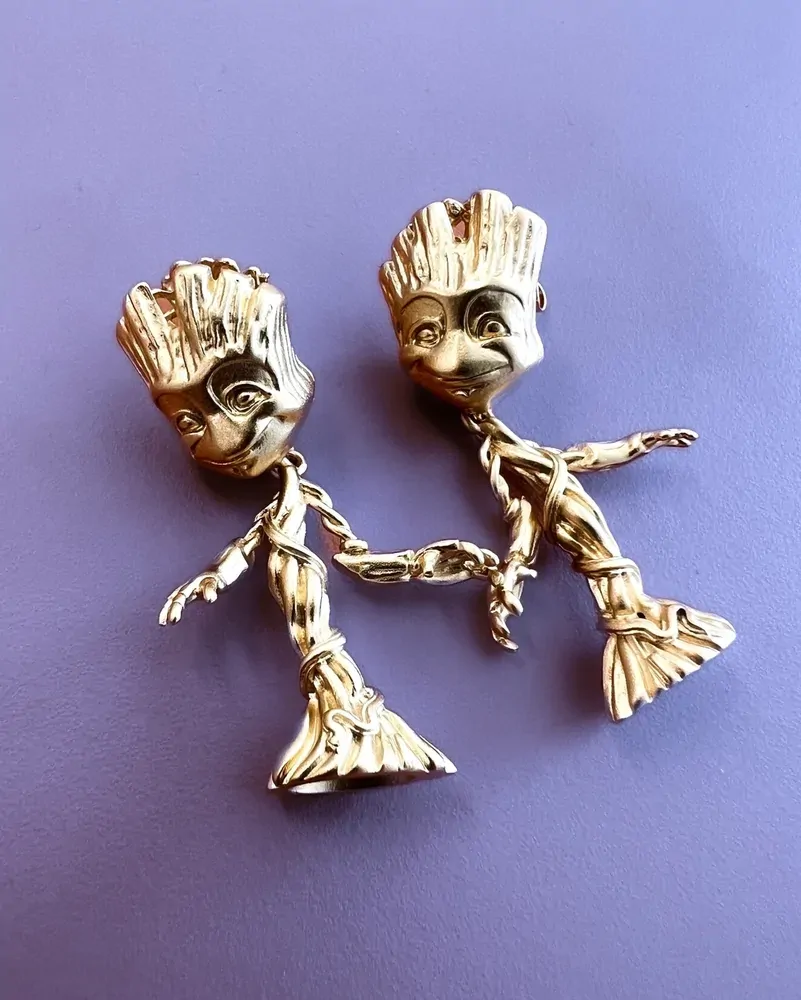 These earrings feature a unique design that captures Baby Groot in his iconic dance move, making them the perfect way to show off your love for the Guardians of the Galaxy. With these earrings, you'll feel like you're dancing right alongside Baby Groot himself. They're perfect for adding a touch of playfulness to your everyday look.