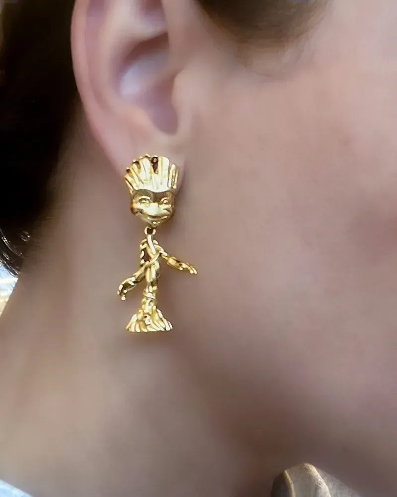 Introducing the must-have accessory for any Guardians of the Galaxy fan - the Marvel x Couture Kingdom Baby Groot Drop Earrings!