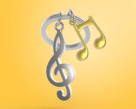Musicians, singers, music fans - hang a little of your passion on your keys! This keyring picks up the iconic symbols of the music world: a treble clef and a beam note.