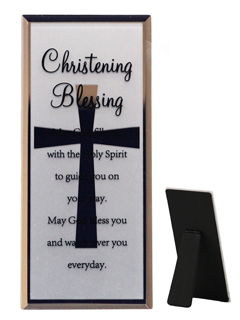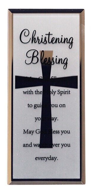 The plaque reads: "Christening Blessing - May God fill you with the Holy Spirit to guide you on your way. May God Bless you and watch over you everyday."