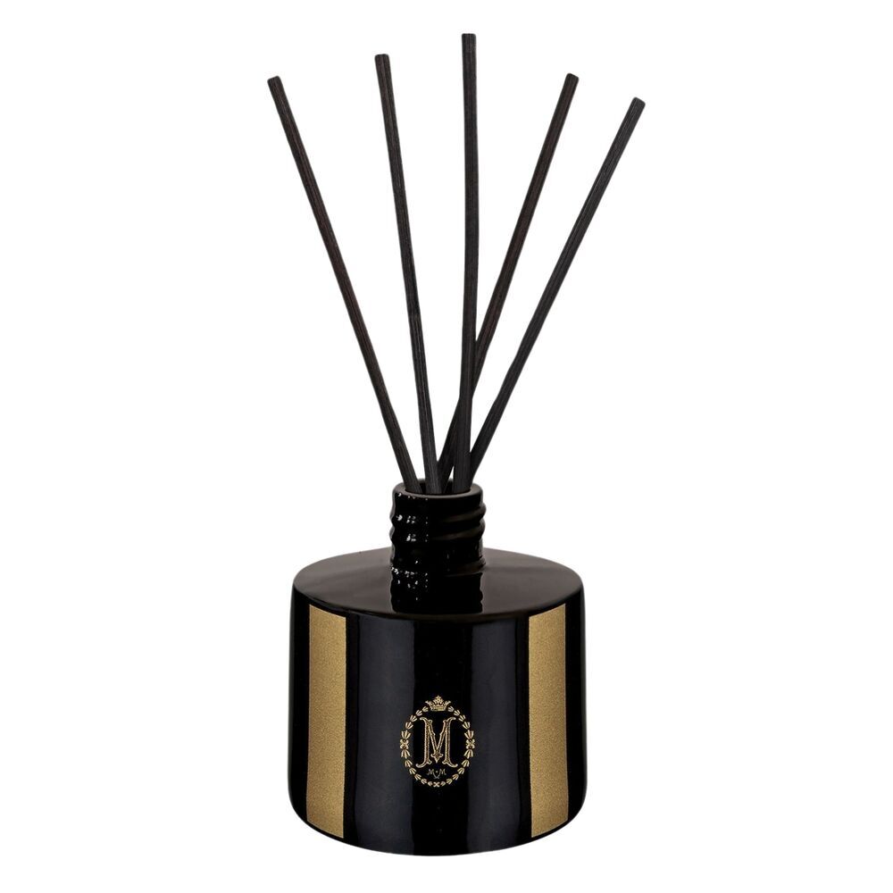 This embellished Reed Diffuser set contains a fragrance filled black glass flacon with black reeds to infuse the air and add style to any space.