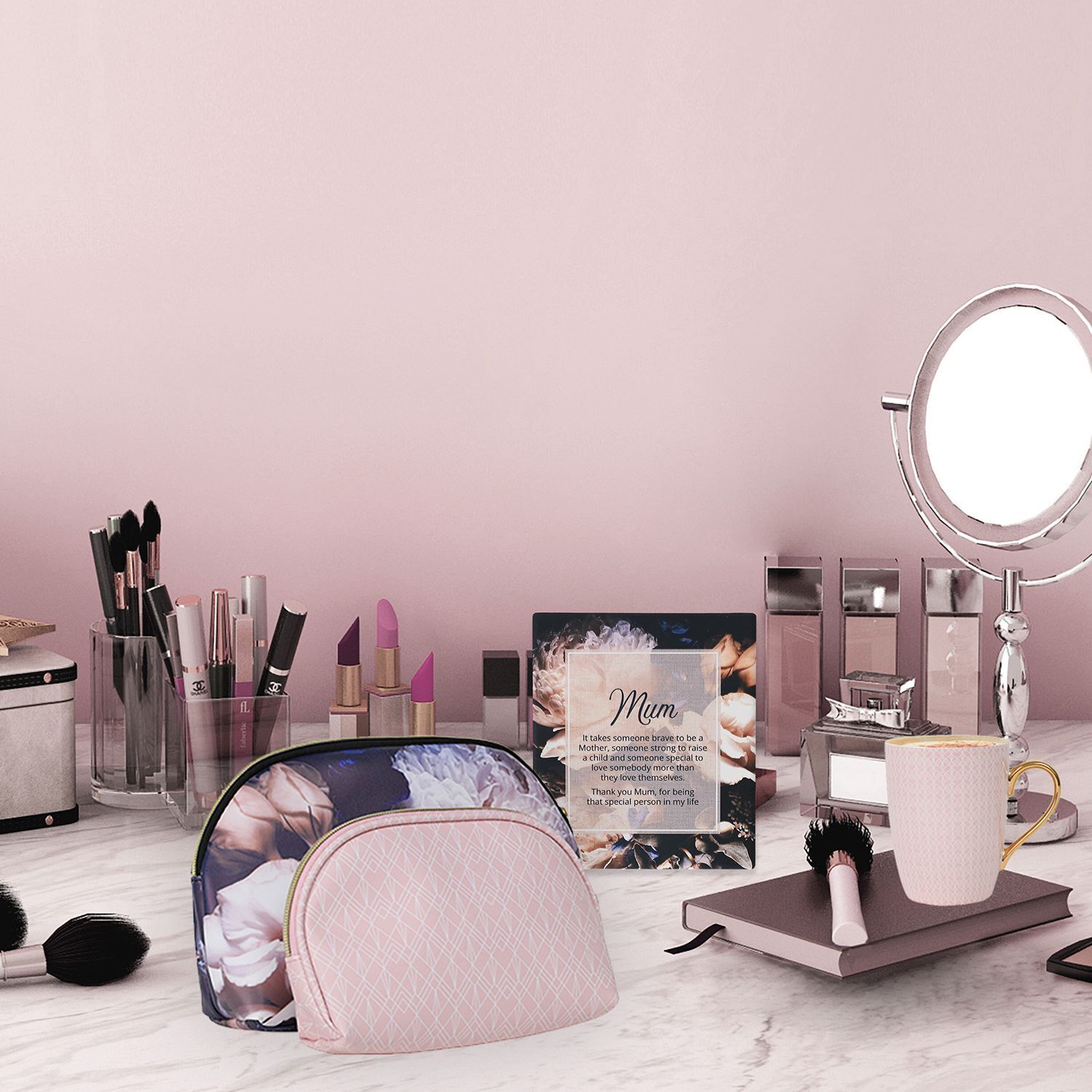 Spoil her with a gift that is not only beautiful, but unique, with a special secret message inside. Featuring pink soft florals contrasted by vibrant blooms, this is a trendy gift that will bring a smile to her face.