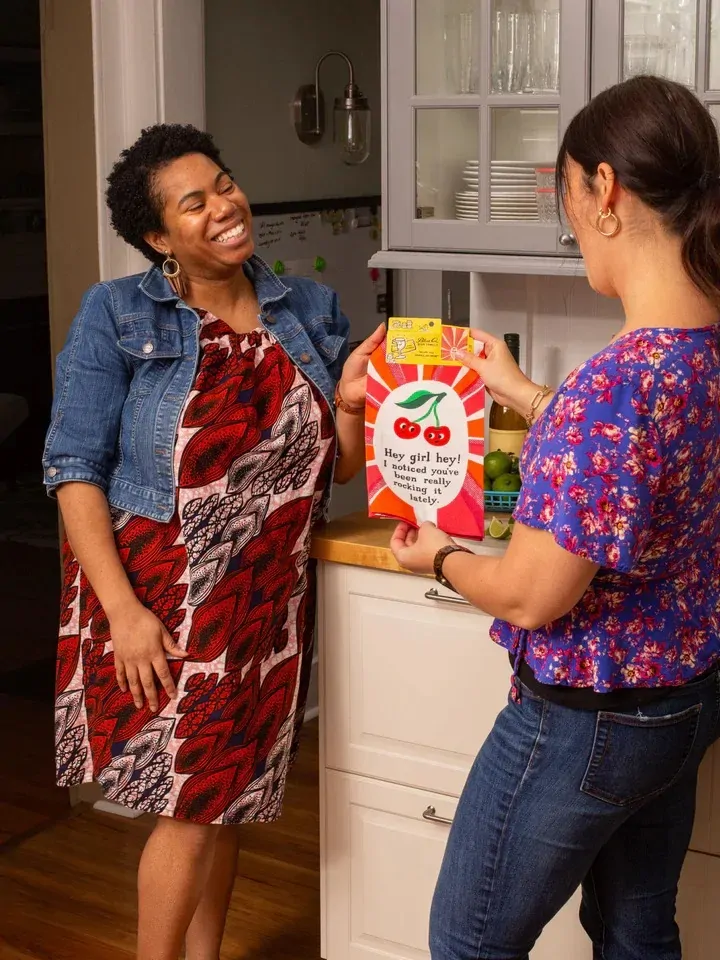 - Tea towel reads: "Hey girl hey! I noticed you've been really rocking it lately."