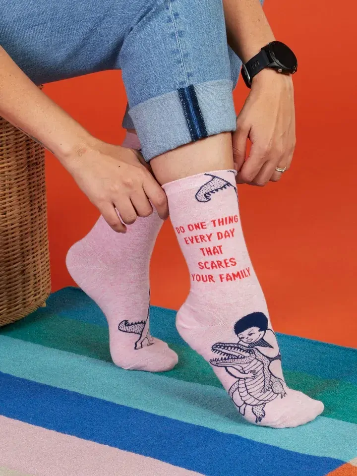 BLUE Q WOMENS CREW SOCKS - DO ONE THING EVERY DAY THAT SCARES YOUR FAMILY
