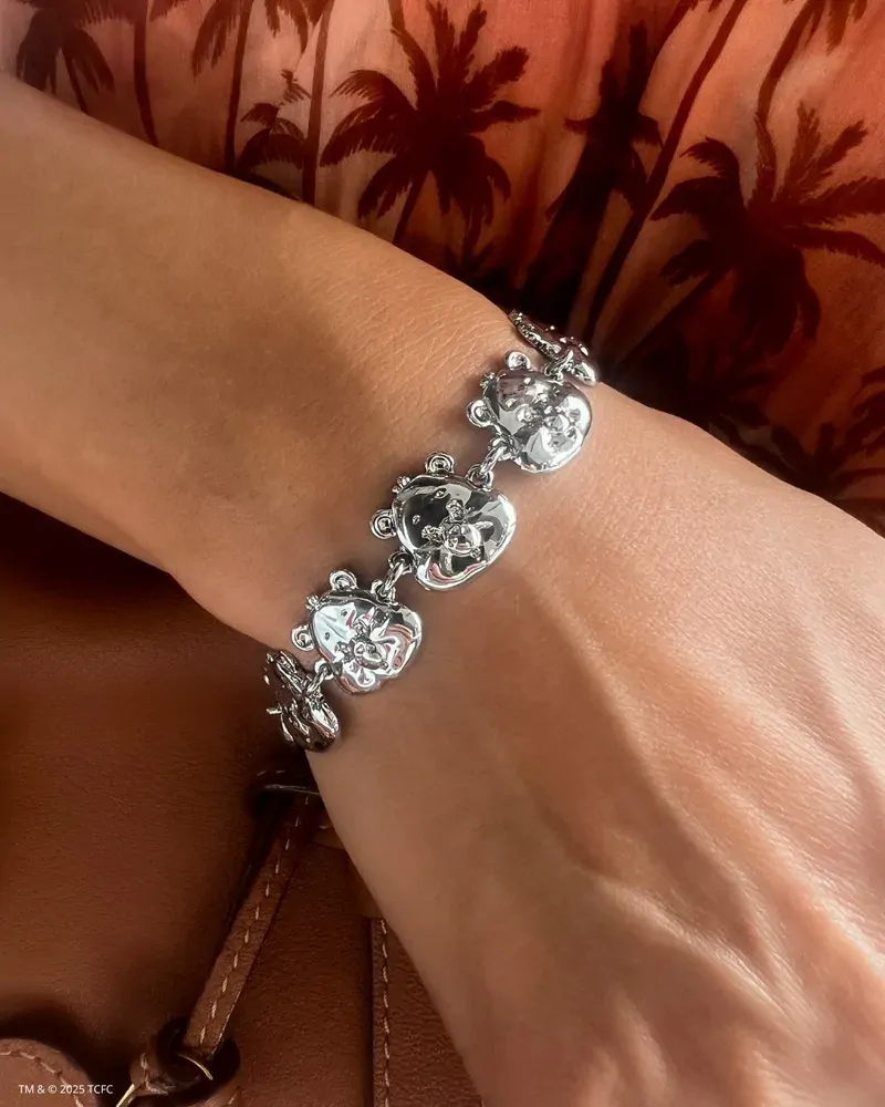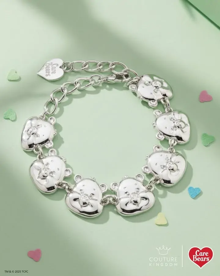Elevate your style with this sleek, modern bracelet featuring high-shine finishes and iconic Care Bear faces. Perfect for adding a playful yet sophisticated touch to any outfit, it combines nostalgic charm with contemporary design for a standout accessory you'll love to wear every day.