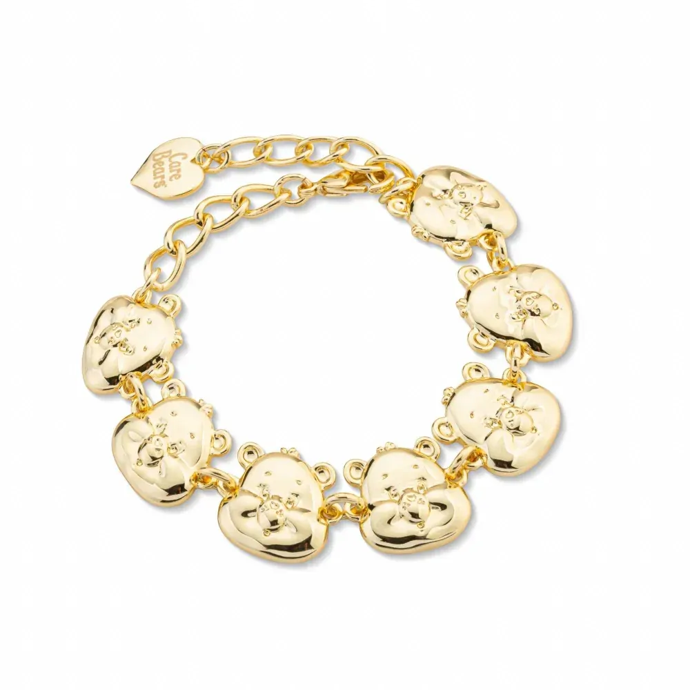 Elevate your style with this sleek, modern bracelet featuring high-shine finishes and iconic Care Bear faces. Perfect for adding a playful yet sophisticated touch to any outfit, it combines nostalgic charm with contemporary design for a standout accessory you'll love to wear every day.