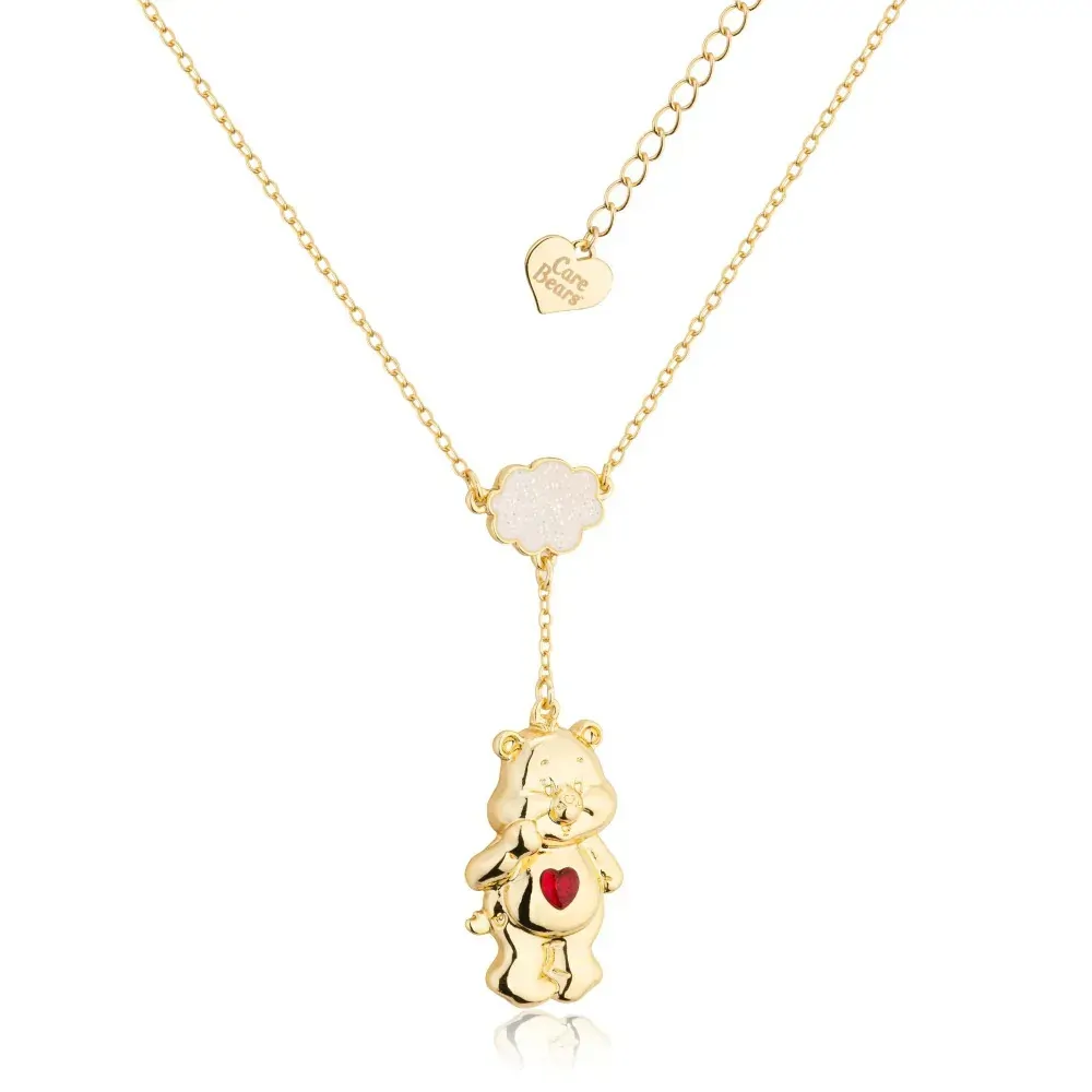 Celebrate kindness with the Care Bears Tenderheart Bear Necklace! Featuring the beloved Tenderheart Bear with a rich red crystal heart amongst a shimmery white cloud. A charming touch of Care-a-Lot for your everyday style!
