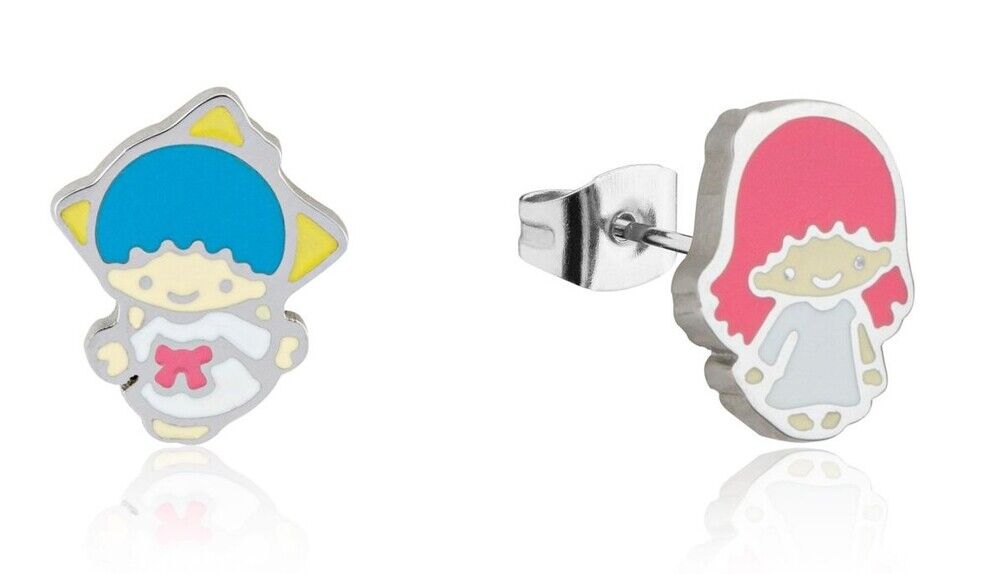 Experience cuteness overload with these ECC Sanrio Little Twin Stars stud earrings. Made with enamel and hypoallergenic stainless steel, they are perfect for kids and safe for sensitive ears. Add a touch of charm to any outfit. A must-have for any Sanrio fan!