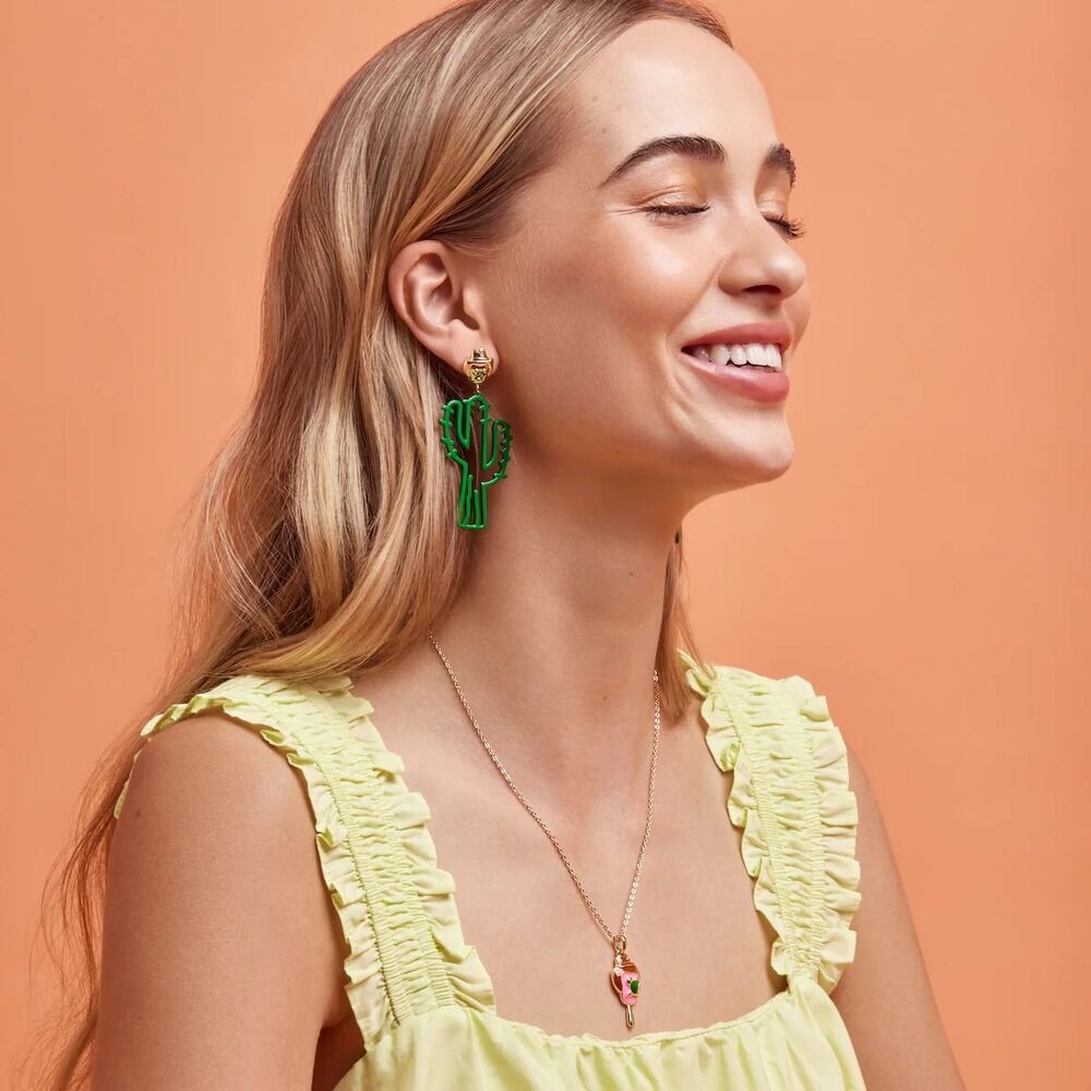 Childhood nostalgia comes alive with these chic cactus drop earrings featuring Australia's favourite Cowboy Bubble O'Bill. Comes complete with green crystal Bubble Gum nose.