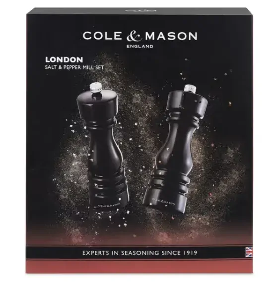 COLE & MASON - LONDON MILLS BLACK GLOSS GIFT SET 18CM