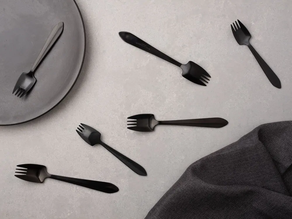 Add a touch of modern elegance to your table with the Splayd Black Label Black 8pc Set. Featuring the iconic all-in-one design that combines a spoon, fork, and knife, each piece is crafted for both style and function. The matte black finish offers a sleek, contemporary look, perfect for entertaining or everyday dining. Durable and versatile, this set is ideal for those who appreciate innovative design and timeless sophistication.