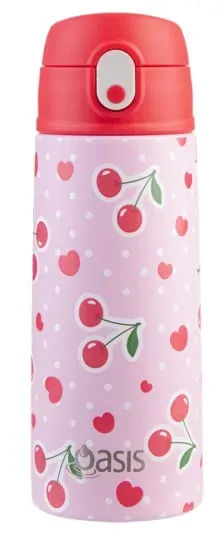 OASIS DOUBLE WALL INSULATED SIPPER STRAW KID'S DRINK BOTTLE - 550ML CHERRY CRUSH