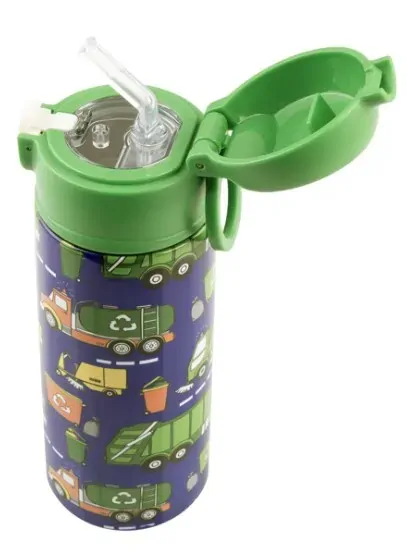 OASIS DOUBLE WALL INSULATED SIPPER STRAW KID'S DRINK BOTTLE - 550ML GARBAGE TRUCKS