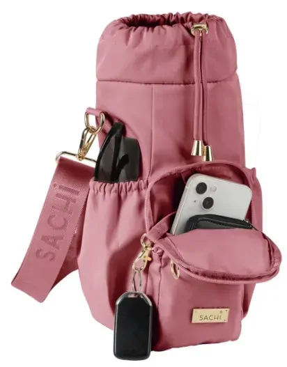 The perfect accessory for your everyday life, the deluxe Crossbody Insulated Bottle Bag from Sachi is etched with detail and sophistication inside and out.