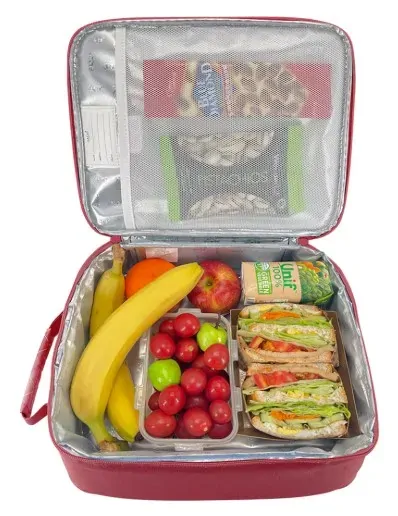 Designed with a premium insulated lining, this lunch bag helps keep food and drinks cooler for longer. For best results, use an ice pack or ice substitute - these work more effectively than ice cubes and help minimise condensation. If using ice cubes, ensure they are sealed in a zip-lock bag to protect other items. To maximise cooling efficiency, pack the bag with items of similar temperature, ensuring they are as cold as possible when packed. Place ice packs or substitutes on top, as cold air sinks, and minimise opening and closing the bag to preserve the cool air inside.