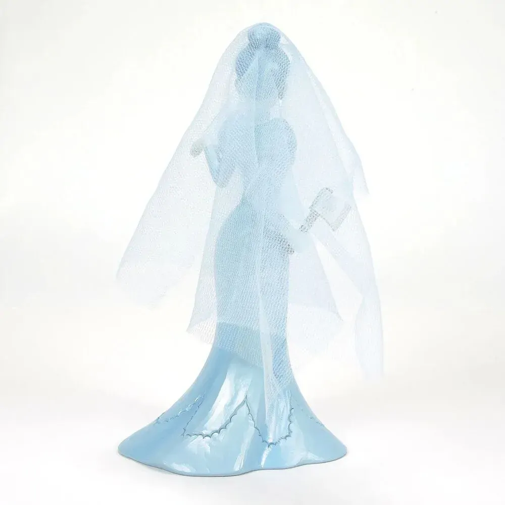 Jim Shore's rendition of the ghost bride from the Haunted Mansion is hauntingly beautiful. Draped in an ethereal gown adorned with intricate rosemaling designs, she clutches an ominous axe, warning of her eternal presence within the manor's halls.