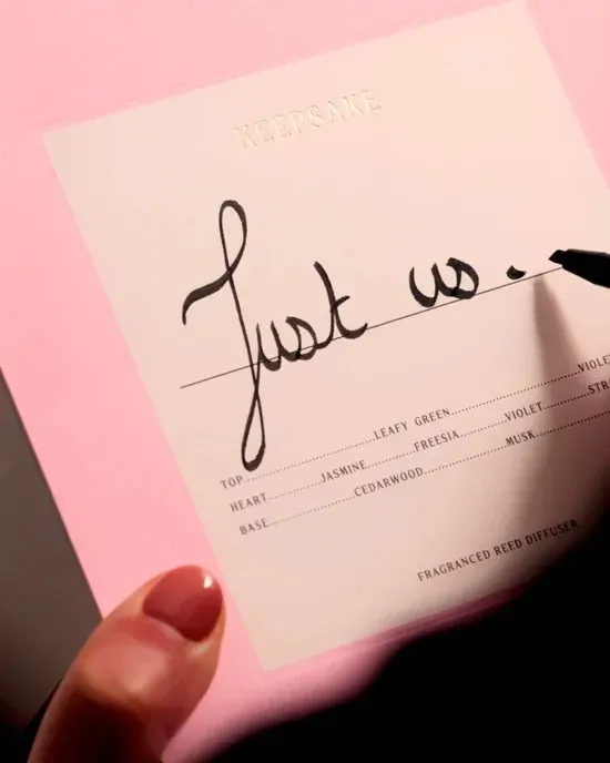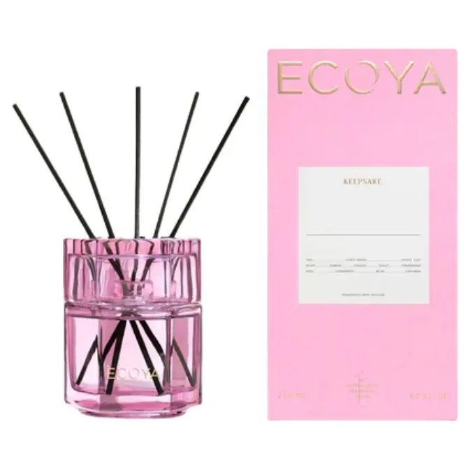 A fragrance that stays with you. Housed in a sculptural six-sided coloured cut glass vessel and featuring five black reed diffusers, the Keepsake Diffuser is made for those who appreciate fragrance as more than a fragrance - it's a memory, a moment, a feeling. With fragrance notes inscribed on the front, it invites you to choose by instinct - what resonates, what lingers, what feels like home. Personalise it with a name, a moment, a sentiment. Thoughtfully designed, the vessel and lid can be stacked or arranged to create layered compositions, allowing you to style them your way. Your diffuser comes with a separate diffuser liquid, allowing you to pour the fragrance into the vessel yourself. Designed to be kept and cherished, each piece allows you to select a fragrance that speaks to you. This is fragrance without rules.