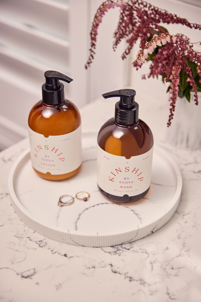 The KINSHIP by ECOYA Wash refreshes your skin and body with contemporary fragrances designed by ECOYA. A mild, cleansing formulation with coconut and macadamia oils, free from parabens, propylene glycol, silicone and artificial colours.