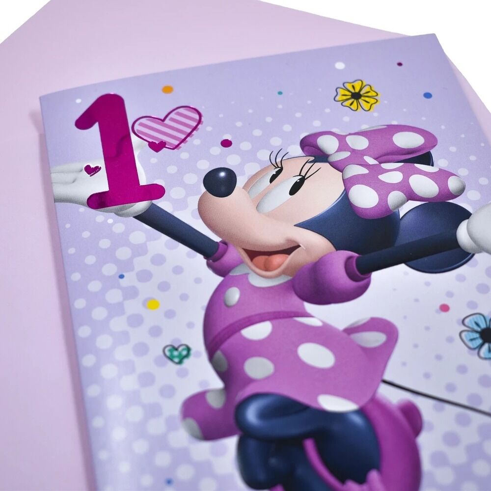 - Includes one Minnie Mouse 1st birthday card and one pink envelope
