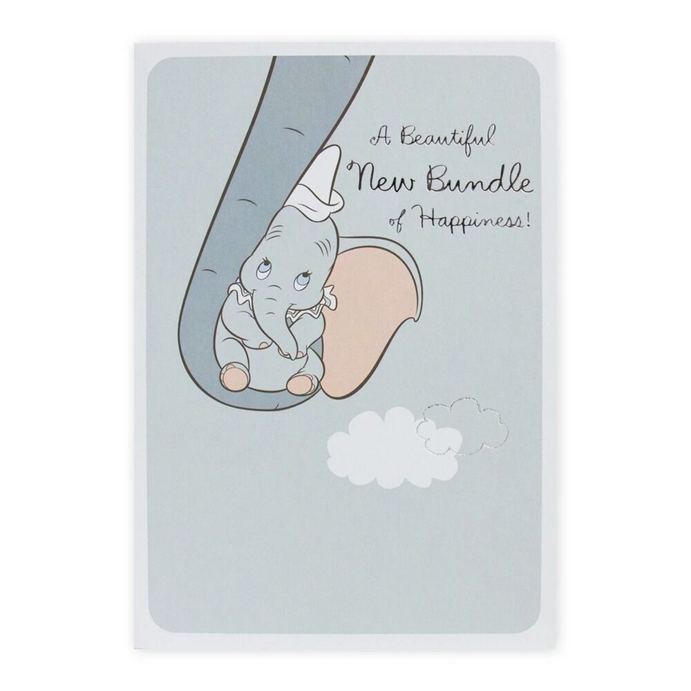 - Includes one Dumbo new baby congratulations card and one grey-silver envelope