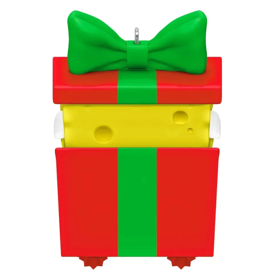 Jumping jellyfish! SpongeBob SquarePants has a present for you this holiday season—himself! Fans of Nickelodeon's animated hit television series will put this Christmas tree ornament on the top of their wish list. The fun decoration features the joyful fry cook of the Krusty Krab in Bikini Bottom peeking out of a gift box wrapped in red with a green bow.