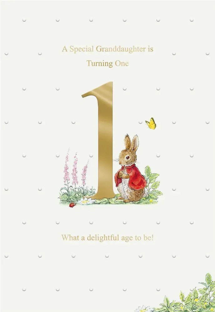 Celebrate a special granddaughter's 1st birthday with this elegant Peter Rabbit card.