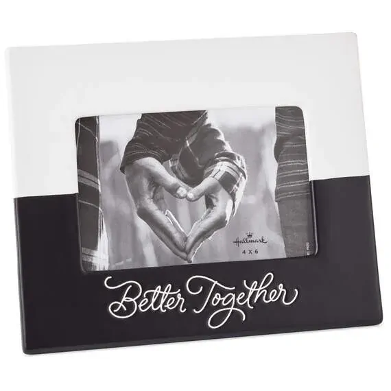 Celebrate the love you share with this charming picture frame in black and white. Two-tone colour block frame features a 'Better Together' caption below the horizontal 4x6 opening. Modern designed photo holder makes a great anniversary gift to keep or a wedding gift to give to a great couple.